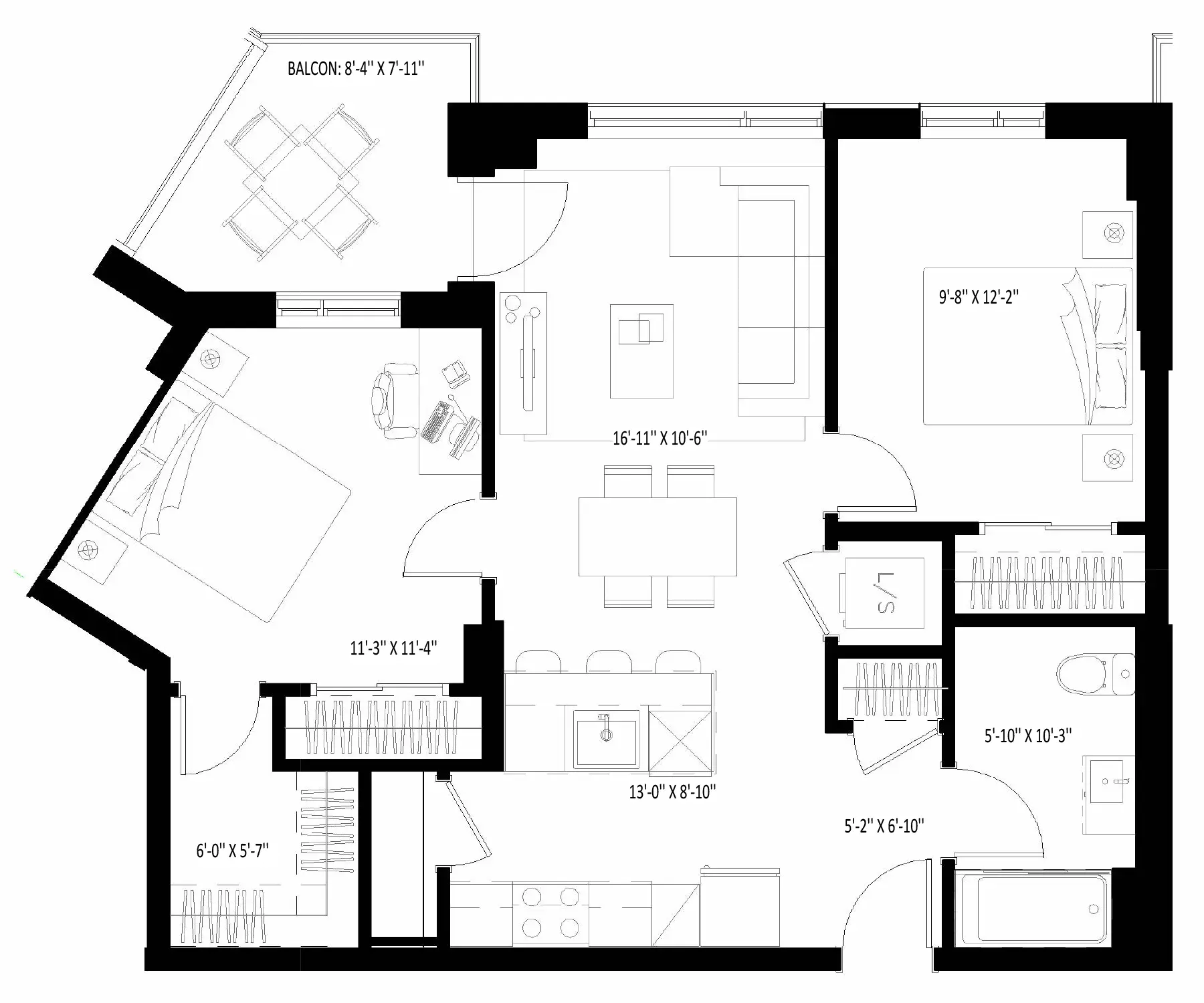 - Unit area : 833 square feet