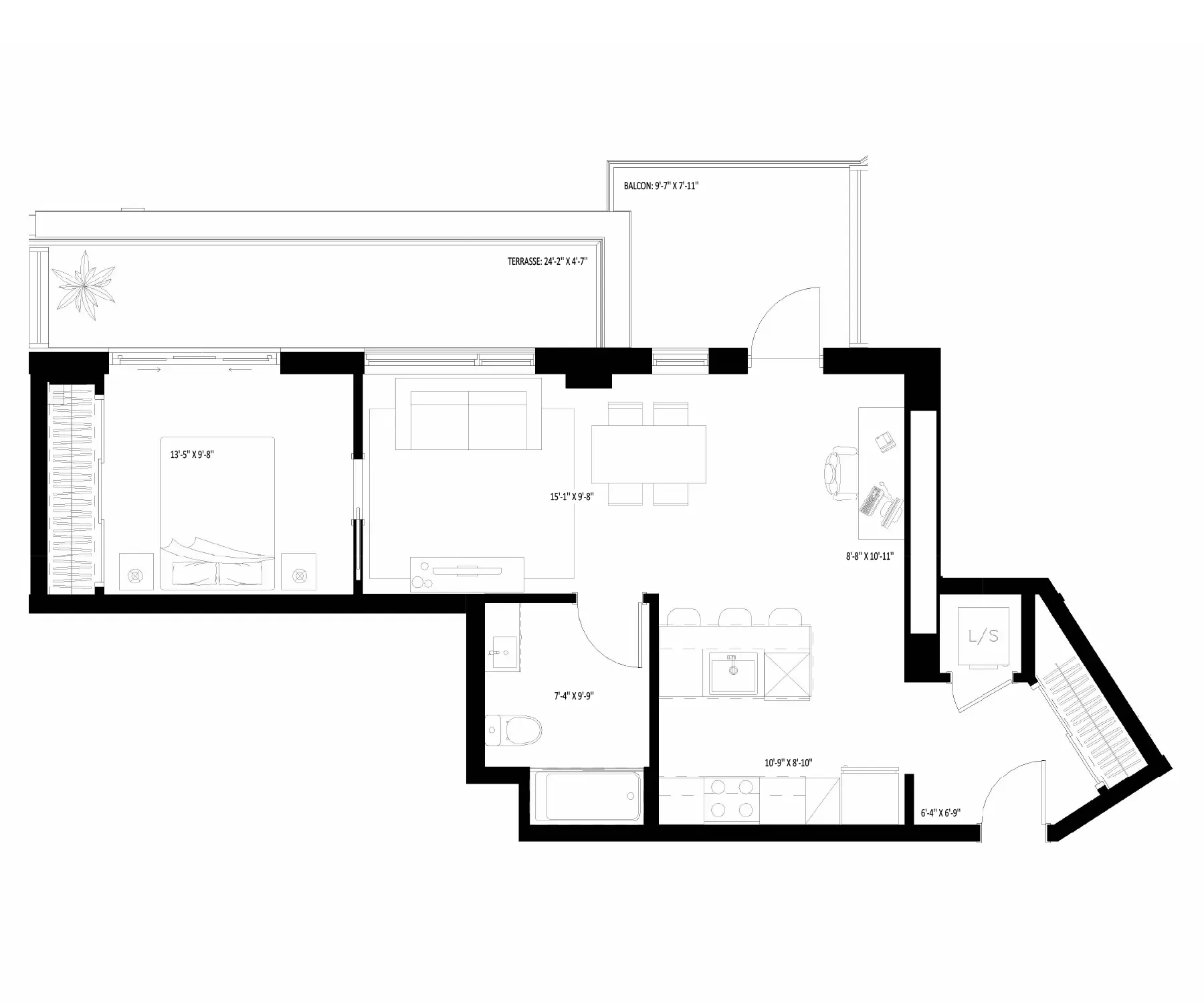 - Terrace area : 191 square feet