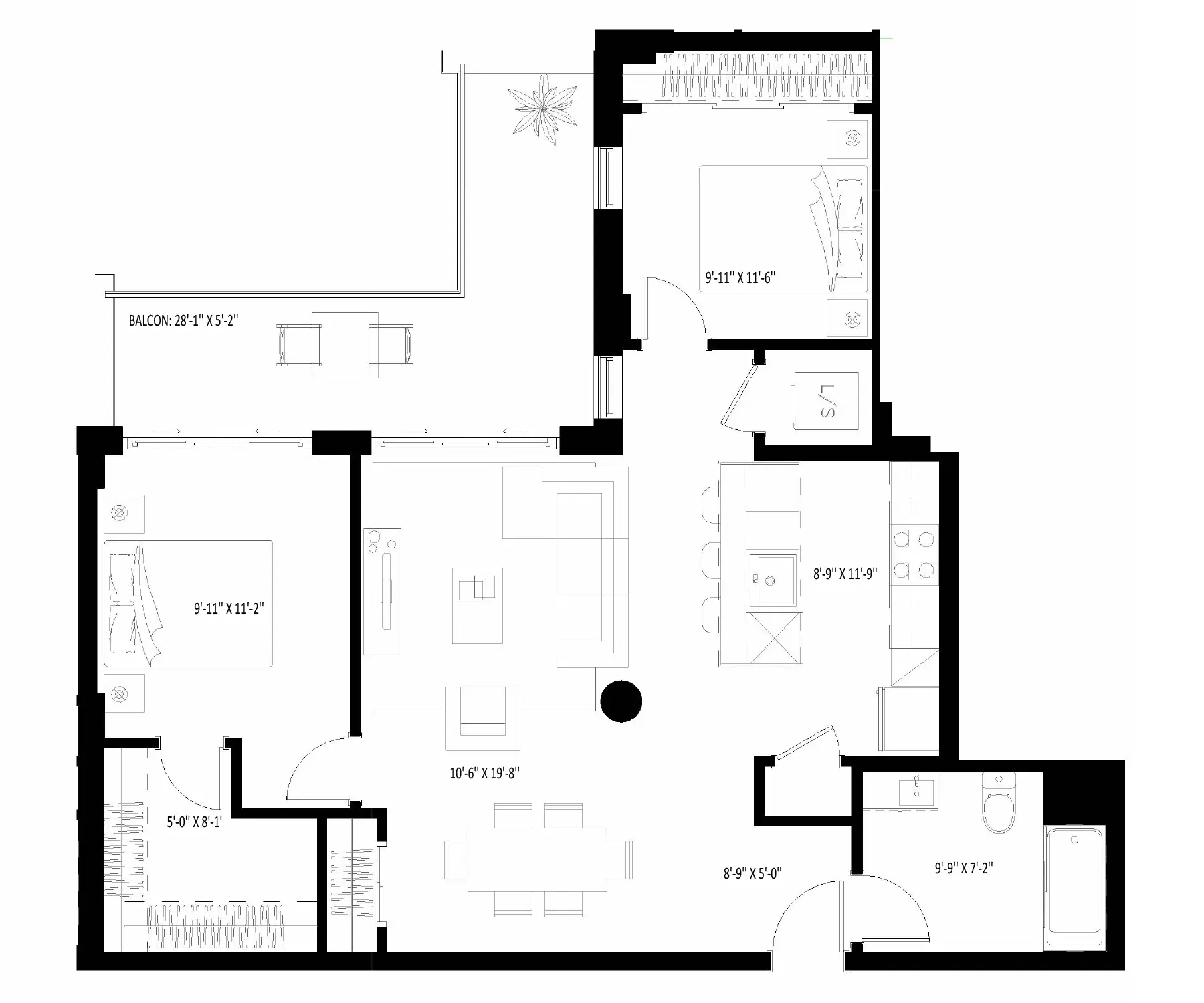 - Unit area : 950 square feet