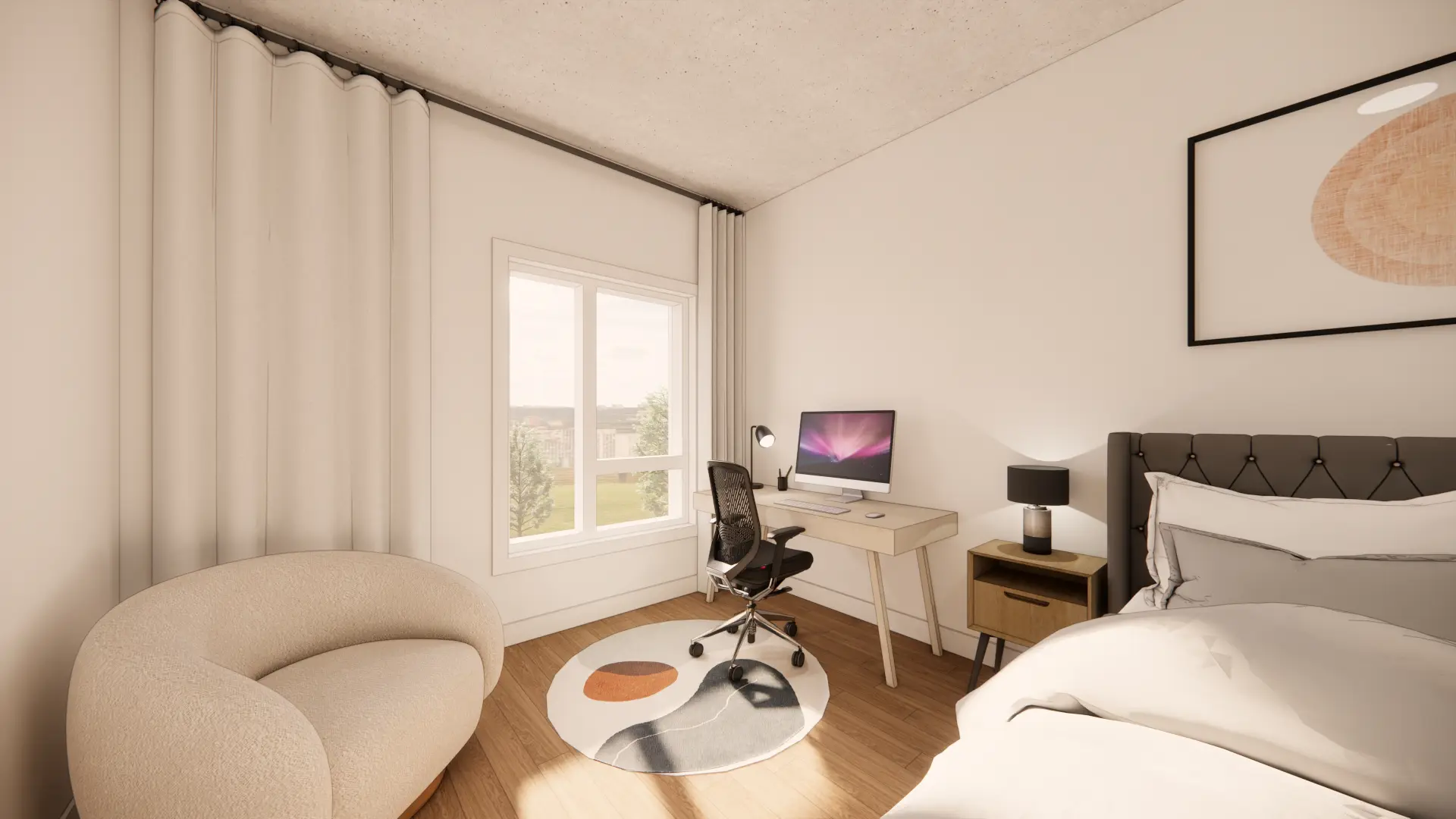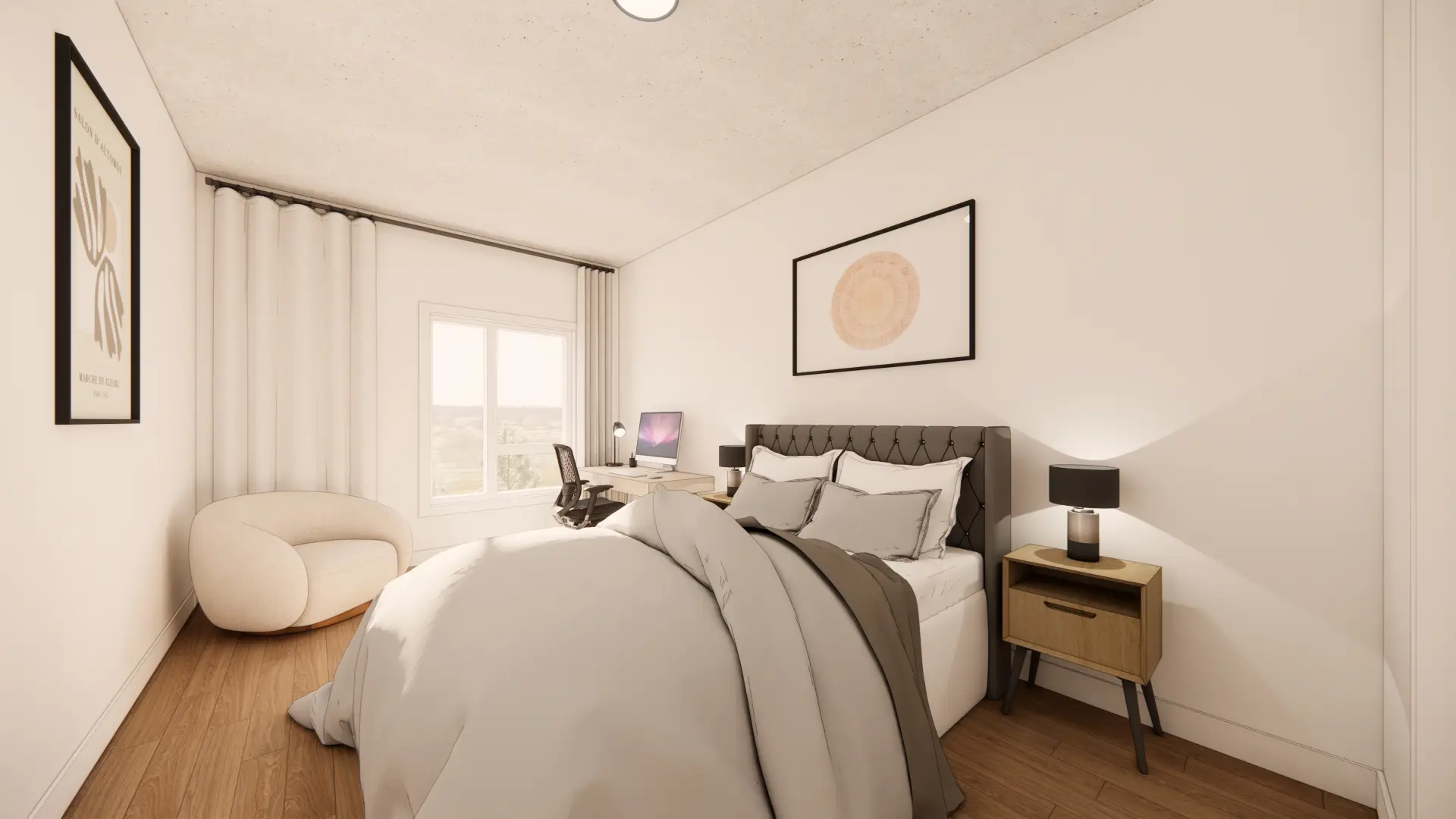 Each room has been designed as a separate living area, offering unparalleled comfort. We have created a functional, light-filled environment for you. This natural light enhances the welcoming atmosphere of the space while highlighting the exceptional quality of the interior finishes. With 1 to 4 bedrooms, the rental condos at Dalia come in clever and refined configurations, tailored to your needs and lifestyle.