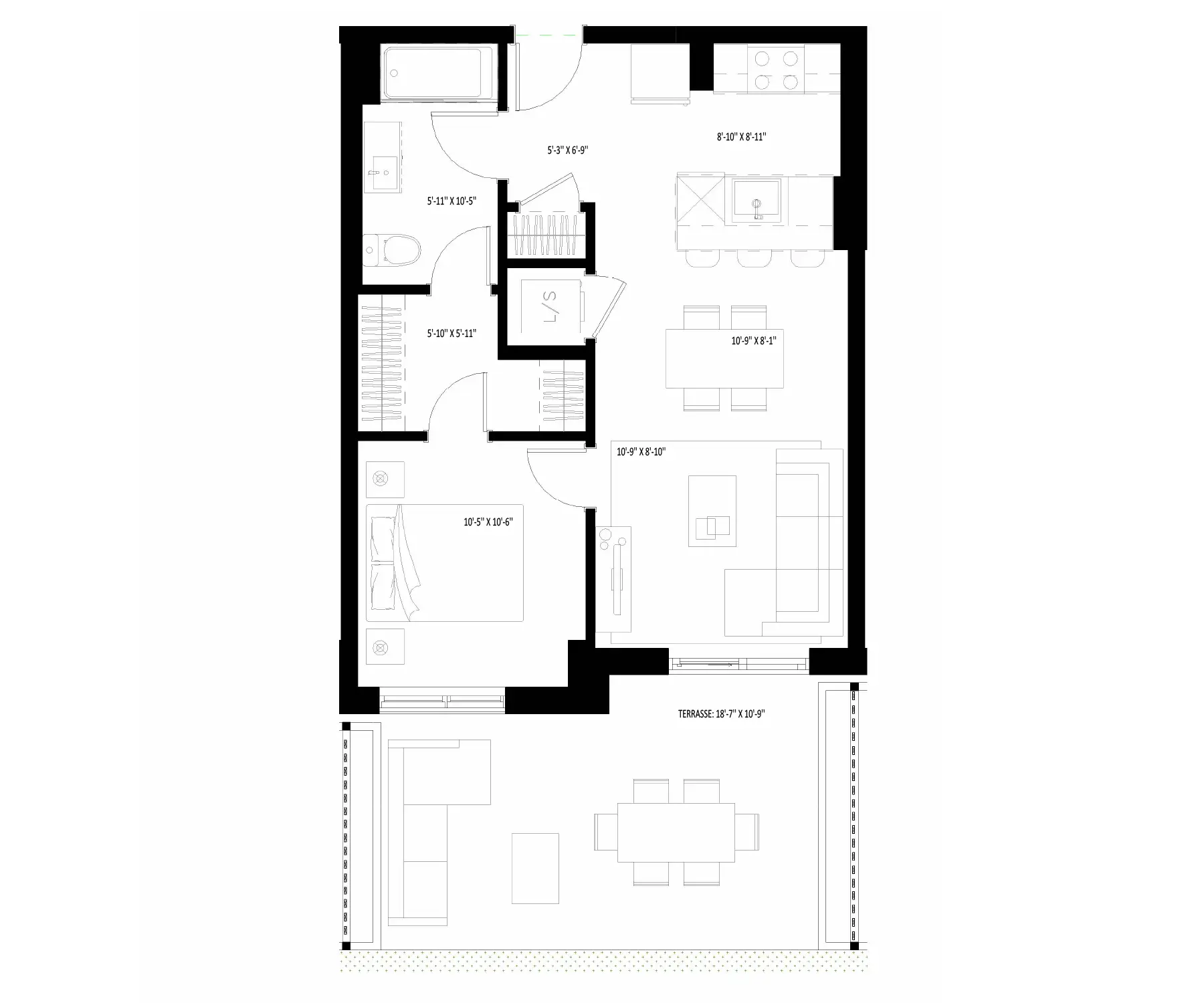 • Superficie de la terrasse : 233 pieds carrés
