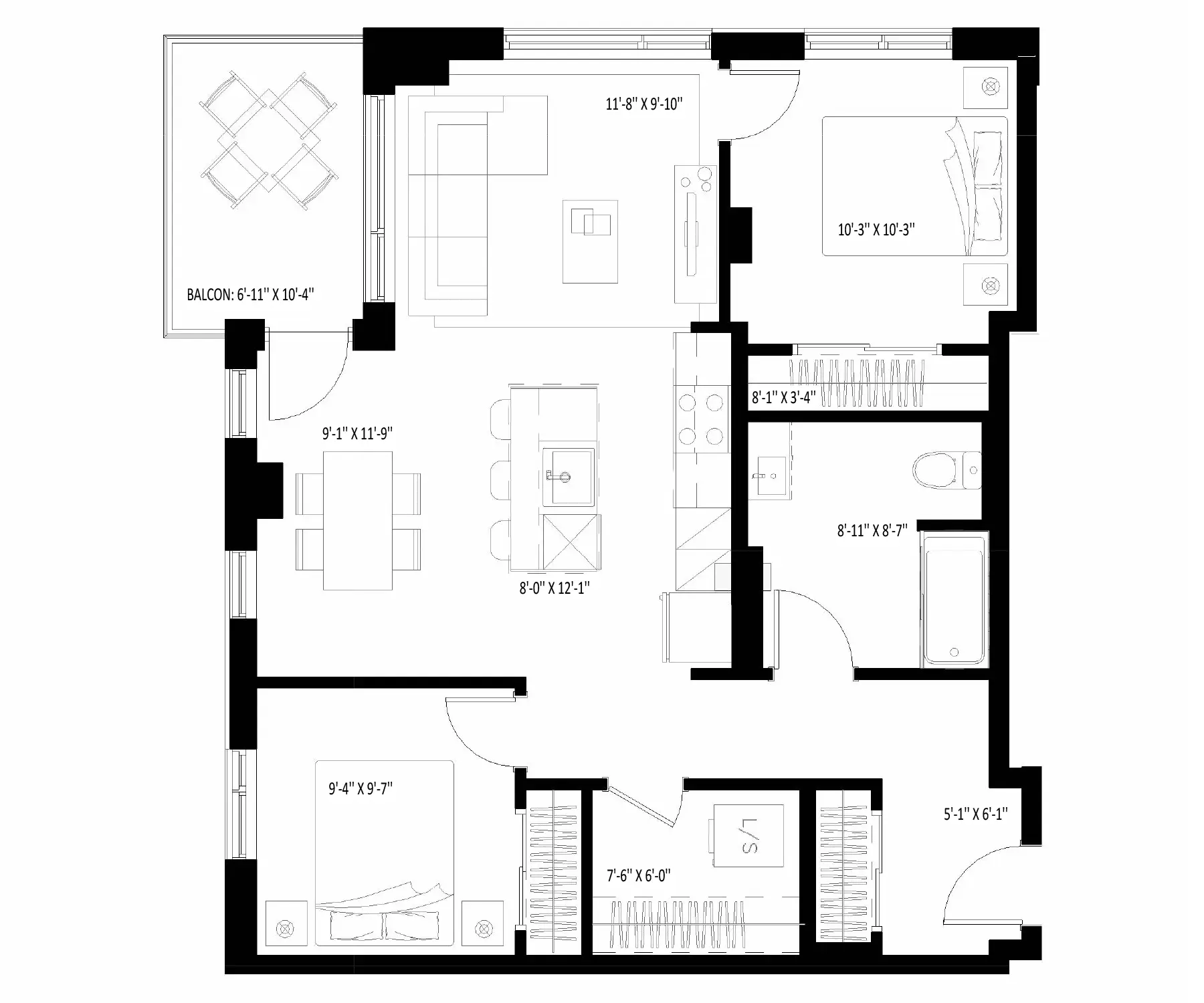 • Superficie de l'unité : 907 pieds carrés